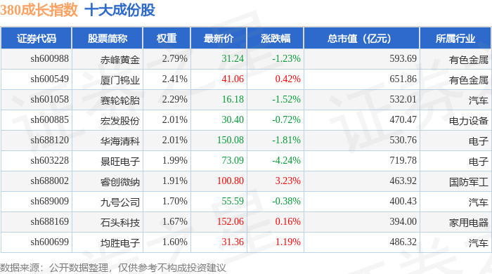 380成长(000117)指数十大成份股详情如下: