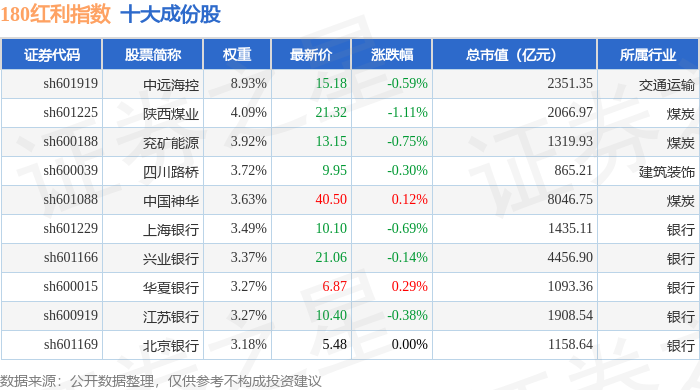 180红利(000149)指数十大成份股详情如下: