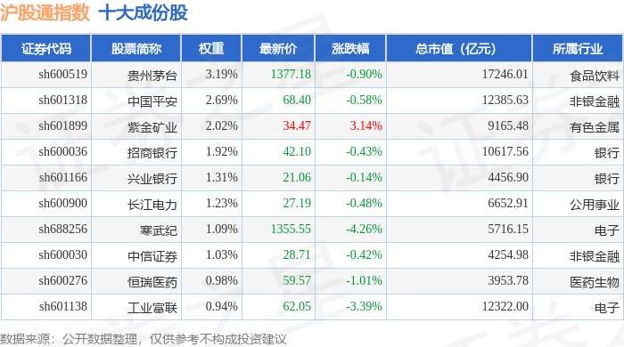 沪股通(000159)指数十大成份股详情如下:
