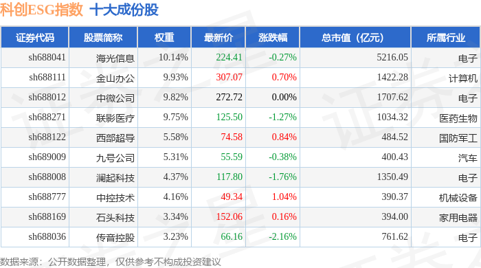 科创ESG(000691)指数十大成份股详情如下: