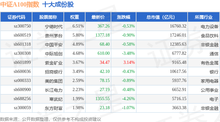 中证A100(000903)指数十大成份股详情如下: