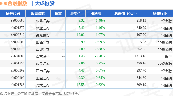 证券之星消息,12月31日,800金融(000974)指数报收于7040.52点,跌0.18%,成交552.29亿元,换手率0.38%。当日该指数成份股中,上涨的有13家,中国银行以1.06%的涨幅领涨,下跌的有27家,东北证券以1.48%的跌幅领跌。
