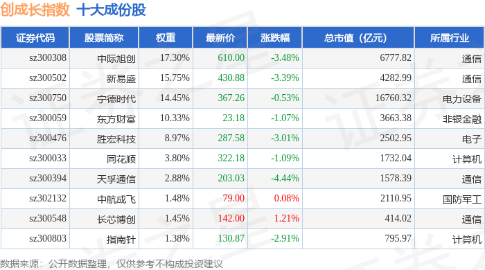 证券之星消息,12月31日,创成长(399296)指数报收于6232.34点,跌2.38%,成交1154.26亿元,换手率2.52%。当日该指数成份股中,上涨的有13家,协创数据以7.51%的涨幅领涨,下跌的有37家,东田微以5.95%的跌幅领跌。