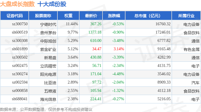大盘成长(399372)指数十大成份股详情如下:
