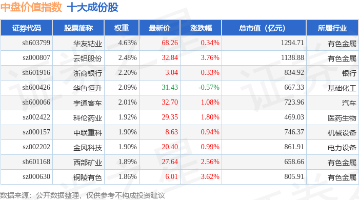 证券之星消息,12月31日,中盘价值(399375)指数报收于5933.86点,涨0.45%,成交623.31亿元,换手率1.04%。当日该指数成份股中,上涨的有38家,养元饮品以9.98%的涨幅领涨,下跌的有57家,环旭电子以3.26%的跌幅领跌。