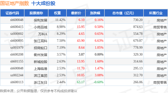国证地产(399393)指数十大成份股详情如下: