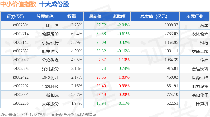 证券之星消息,12月31日,中小价值(399604)指数报收于2029.24点,跌0.52%,成交419.98亿元,换手率1.02%。当日该指数成份股中,上涨的有22家,鸿路钢构以3.79%的涨幅领涨,下跌的有71家,中材科技以3.63%的跌幅领跌。