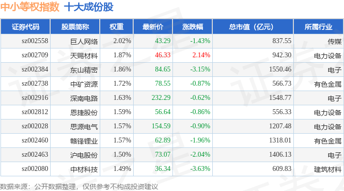 证券之星消息,12月31日,中小等权(399634)指数报收于4328.3点,跌0.15%,成交1383.52亿元,换手率1.66%。当日该指数成份股中,上涨的有33家,三花智控以5.35%的涨幅领涨,下跌的有62家,信立泰以4.33%的跌幅领跌。