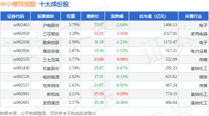 证券之星消息,12月31日,中小绩效(399658)指数报收于4925.26点,跌0.16%,成交1383.52亿元,换手率1.66%。当日该指数成份股中,上涨的有33家,三花智控以5.35%的涨幅领涨,下跌的有62家,信立泰以4.33%的跌幅领跌。