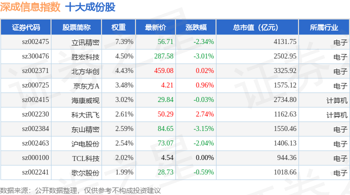 深成信息(399687)指数十大成份股详情如下: