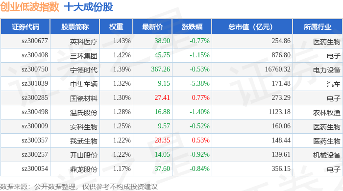 创业低波(399692)指数十大成份股详情如下: