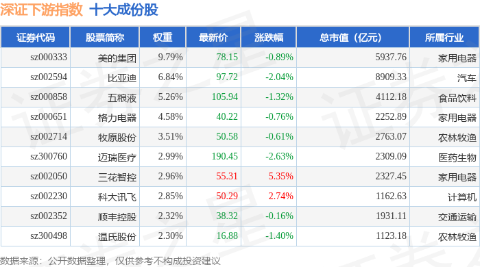 深证下游(399706)指数十大成份股详情如下: