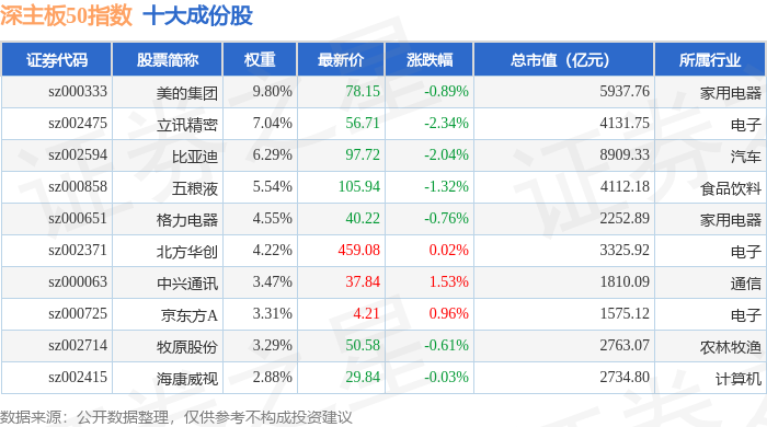 深主板50(399750)指数十大成份股详情如下: