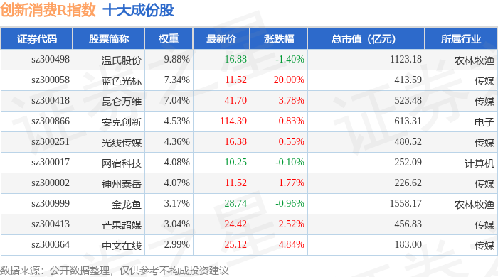 创新消费R(470041)指数十大成份股详情如下: