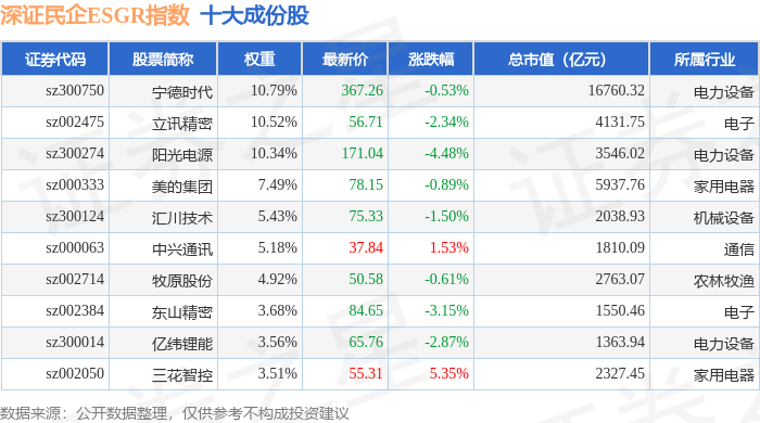 深证民企ESGR(470056)指数十大成份股详情如下: