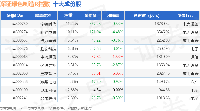 深证绿色制造R(470069)指数十大成份股详情如下: