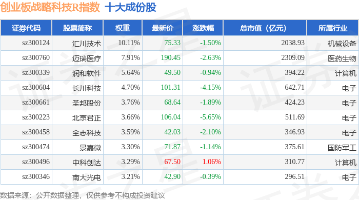 创业板战略科技R(471004)指数十大成份股详情如下: