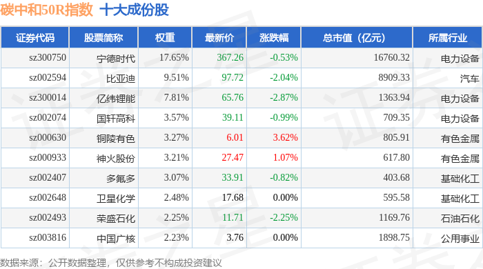 证券之星消息,12月31日,碳中和50R(480021)指数报收于2513.42点,跌0.64%,成交375.43亿元,换手率1.09%。当日该指数成份股中,上涨的有9家,云南铜业以5.5%的涨幅领涨,下跌的有35家,鹏辉能源以3.76%的跌幅领跌。