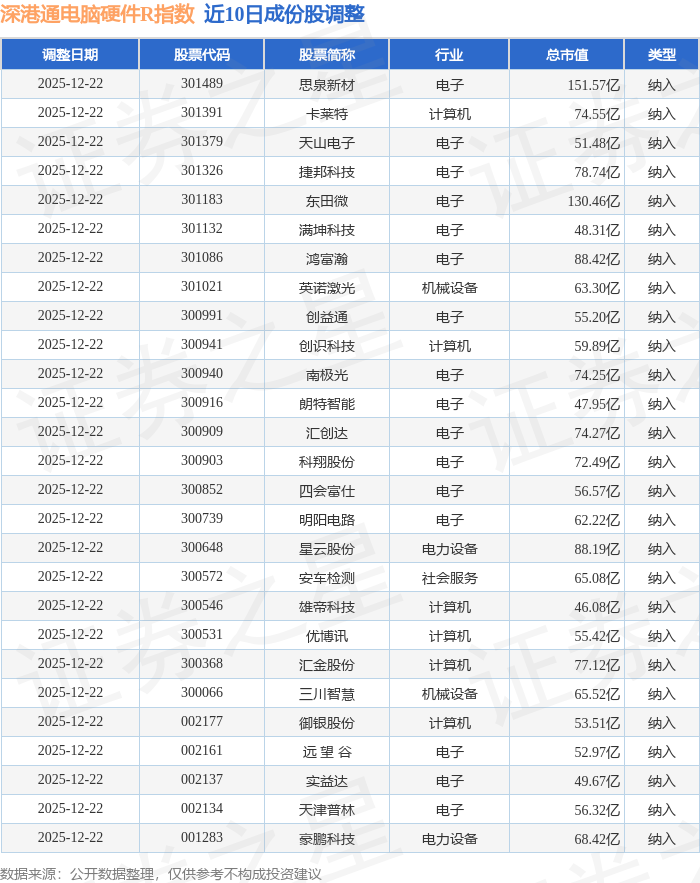 近10日内深港通电脑硬件R(483043)指数成份股做了调整,新纳入了27只股票。