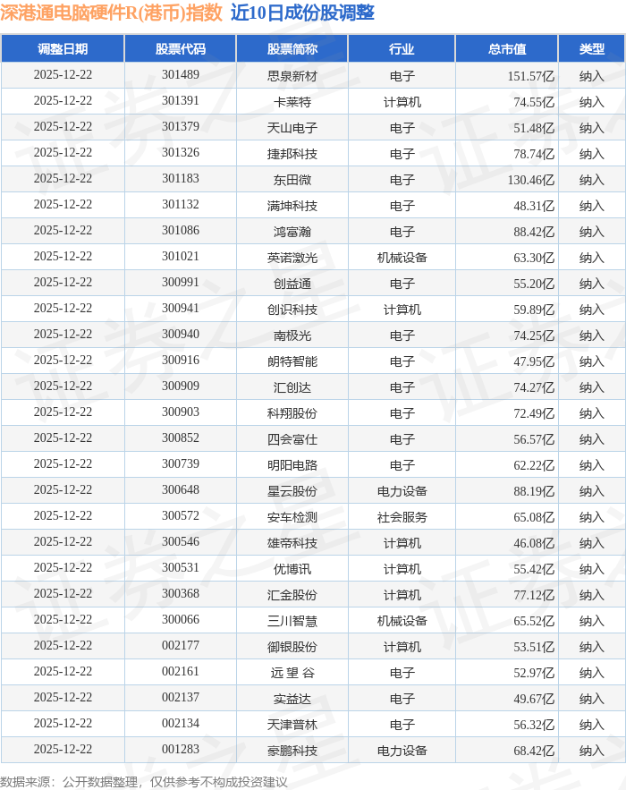 近10日内深港通电脑硬件R(港币)(483044)指数成份股做了调整,新纳入了27只股票。