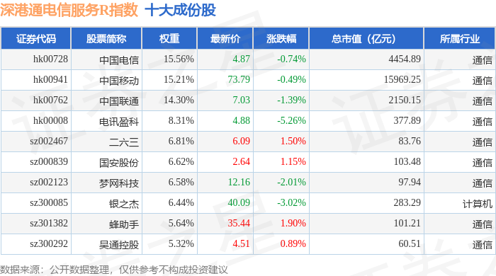 深港通电信服务R(483057)指数十大成份股详情如下: