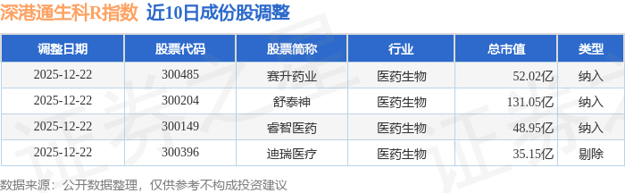 近10日内深港通生科R(483059)指数成份股做了调整,新纳入了3只股票,剔除了1只股票。