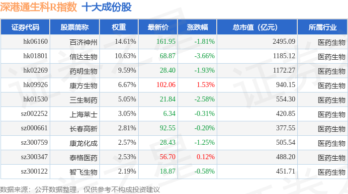 深港通生科R(483059)指数十大成份股详情如下: