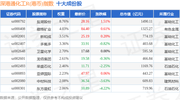 深港通化工R(港币)(483064)指数十大成份股详情如下: