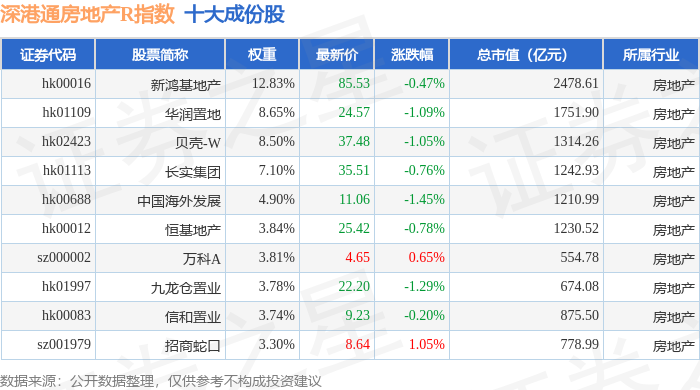 近10日内深港通房地产R(483071)指数成份股做了调整,新纳入了1只股票。