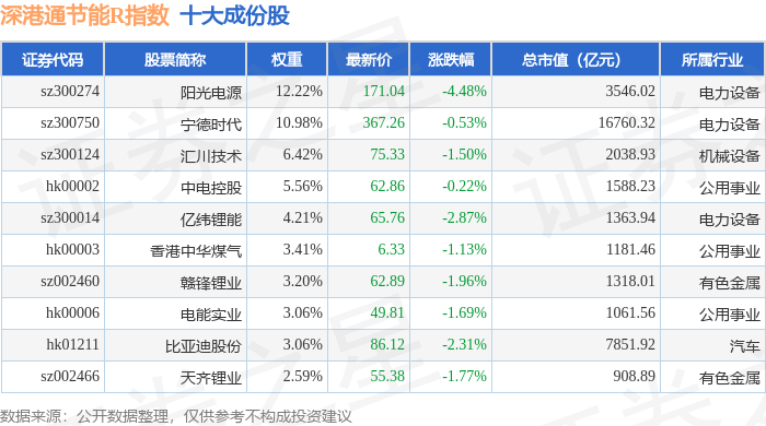 深港通节能R(483085)指数十大成份股详情如下: