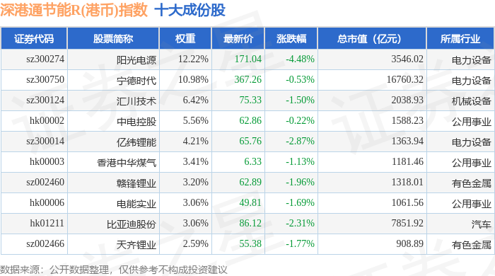 深港通节能R(港币)(483086)指数十大成份股详情如下: