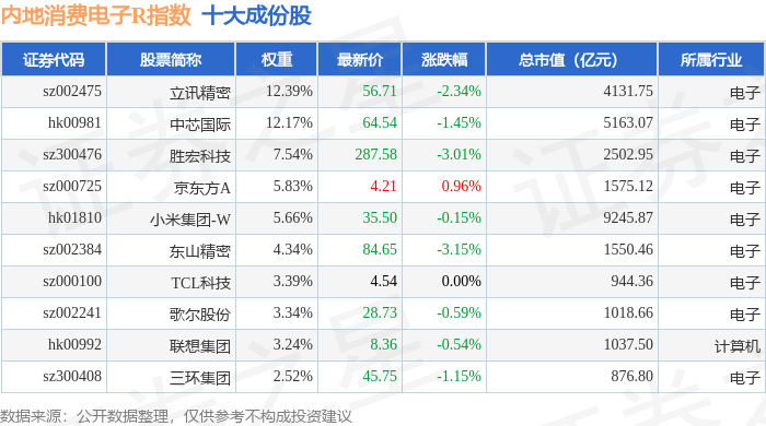 资金流向方面,内地消费电子R(483105)指数成份股当日主力资金净流出合计25.52亿元,游资资金净流入合计2.89亿元,散户资金净流入合计22.63亿元。成份股资金流向详情见下表: