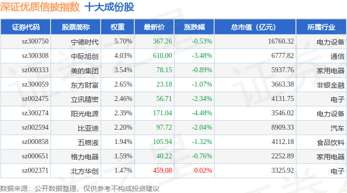 深证优质信披(970065)指数十大成份股详情如下: