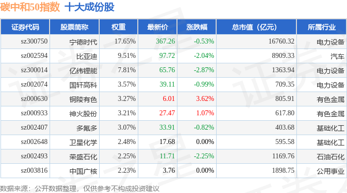 碳中和50(980021)指数十大成份股详情如下: