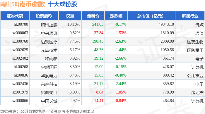 南山50(港币)(980024)指数十大成份股详情如下: