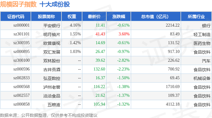 规模因子(980055)指数十大成份股详情如下:
