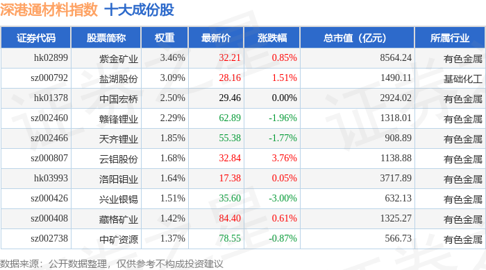 深港通材料(983015)指数十大成份股详情如下: