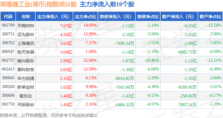 资金流向方面,深港通工业(港币)(983018)指数成份股当日主力资金净流出合计83.75亿元,游资资金净流入合计10.3亿元,散户资金净流入合计73.45亿元。成份股资金流向详情见下表: