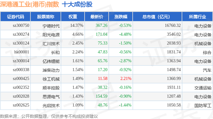 深港通工业(港币)(983018)指数十大成份股详情如下:
