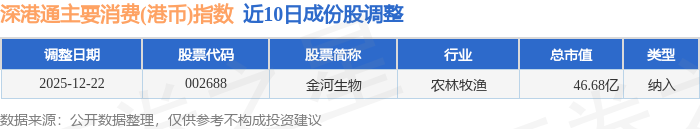 近10日内深港通主要消费(港币)(983022)指数成份股做了调整,新纳入了1只股票。