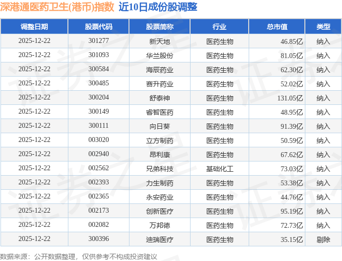 近10日内深港通医药卫生(港币)(983024)指数成份股做了调整,新纳入了14只股票,剔除了1只股票。