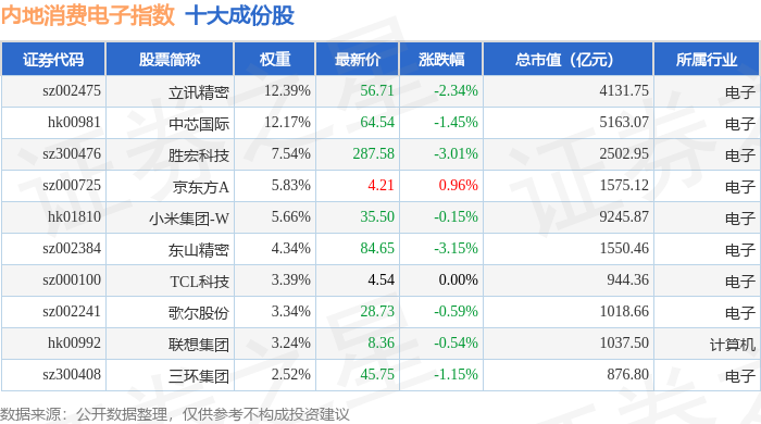 资金流向方面,内地消费电子(983105)指数成份股当日主力资金净流出合计25.52亿元,游资资金净流入合计2.89亿元,散户资金净流入合计22.63亿元。成份股资金流向详情见下表:
