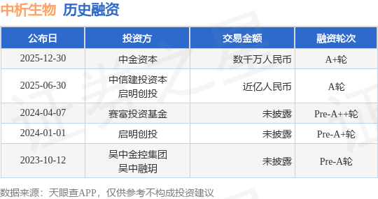 证券之星消息,根据天眼查APP于12月30日公布的信息整理,苏州中析生物信息有限公司A+轮融资,融资额数千万人民币,参与投资的机构包括中金资本。
