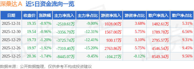 证券之星消息,截至2025年12月31日收盘,深桑达A(000032)报收于19.35元,下跌0.97%,换手率1.27%,成交量14.4万手,成交额2.79亿元。
