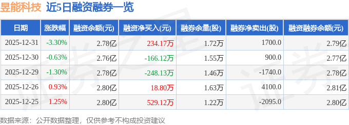 昱能科技融资融券信息显示,融资方面,当日融资买入1702.11万元,融资偿还1467.94万元,融资净买入234.17万元。融券方面,融券卖出1900.0股,融券偿还200.0股,融券余量1.72万股,融券余额86.62万元。融资融券余额2.79亿元。