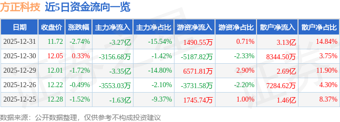 证券之星消息,截至2025年12月31日收盘,方正科技(600601)报收于11.72元,下跌2.74%,换手率4.29%,成交量178.73万手,成交额21.06亿元。