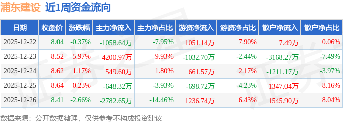 资金流向数据方面,本周浦东建设主力资金合计净流入260.96万元,游资资金合计净流入1218.04万元,散户资金合计净流出1479.0万元。本周资金流向一览见下表: