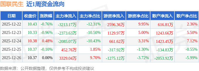 资金流向数据方面,本周国联民生主力资金合计净流出3890.08万元,游资资金合计净流入2794.91万元,散户资金合计净流入1095.17万元。本周资金流向一览见下表: