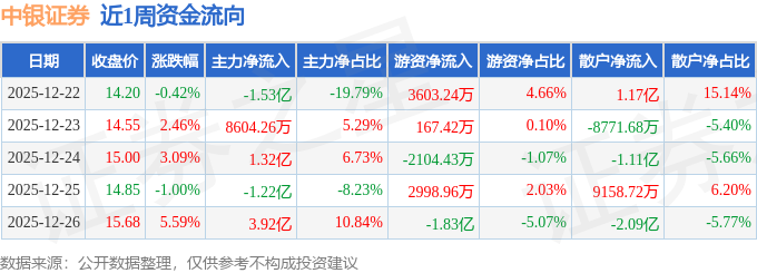 沪深股通持股方面,截止2025年12月26日收盘,中银证券沪股通持股数为5960.22万股,占流通股比为215.0%。