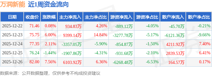 资金流向数据方面,本周万润新能主力资金合计净流入1.12亿元,游资资金合计净流出1.22亿元,散户资金合计净流入1048.95万元。本周资金流向一览见下表:
